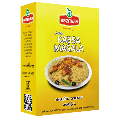 Previous Product Bazmala Kabsa Masala – 50 gm ₹40.00 Bazmala Kabsa Masala - 50 gm quantity Add to cart Category: Kabsa Masala Related products Quick View Quick View Kabsa MasalaBazmala Kabsa Masala – 100 gm ₹80.00 Add to cart Quick View Quick View Kabsa MasalaBazmala Kabsa Masala – 500 gm ₹375.00 Add to cart